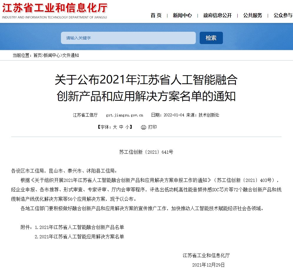 根據(jù)《關(guān)于組織開展2021年江蘇省人工智能融合創(chuàng)新產(chǎn)品和應(yīng)用解決方案申報工作的通知》(蘇工信創(chuàng)新〔2021〕403號),經(jīng)企業(yè)申報、各市推薦、形式審查、專家評審、廳內(nèi)會審等程序,近日,江蘇省工業(yè)和信息化廳組織評選出2021年江蘇省人工智能融合創(chuàng)新產(chǎn)品和應(yīng)用解決方案名單。其中,南京云創(chuàng)大數(shù)據(jù)科技股份有限公司(簡稱“云創(chuàng)大數(shù)據(jù)”)人工智能產(chǎn)品——“面向智慧城市的視頻智能監(jiān)控系統(tǒng)”榜上有名,成功膺選“江蘇省人工智能應(yīng)用解決方案名單”。